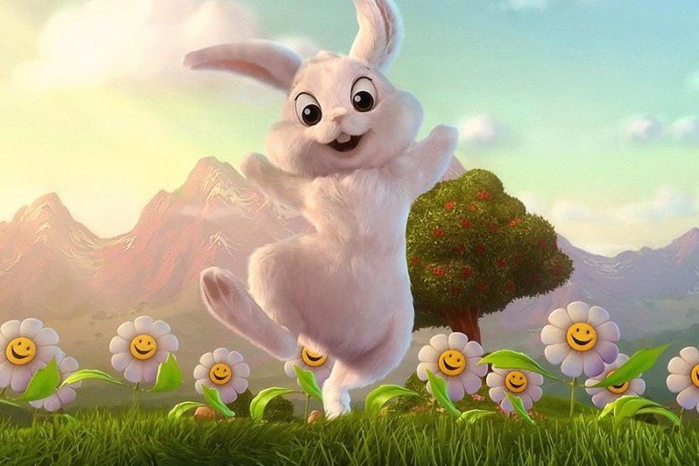 La fusée se pose en faisant plein de petits rebonds. Maman lapin attend que plus rien ne bouge pour ouvrir la porte. Petit lapin est le premier à sortir. Il pousse sur ses jambes très fort et là il saute en l’air. Il fait un gigantesque bond. Ca l’amuse beaucoup alors il recommence, il saute en disant :
